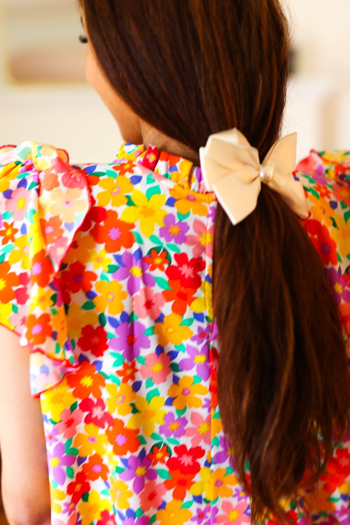 Trend Alert! This satin barrette clip bow is the perfect addition to add that special touch to any of your outfits this spring. The faux pearl detail completes this on-trend item.