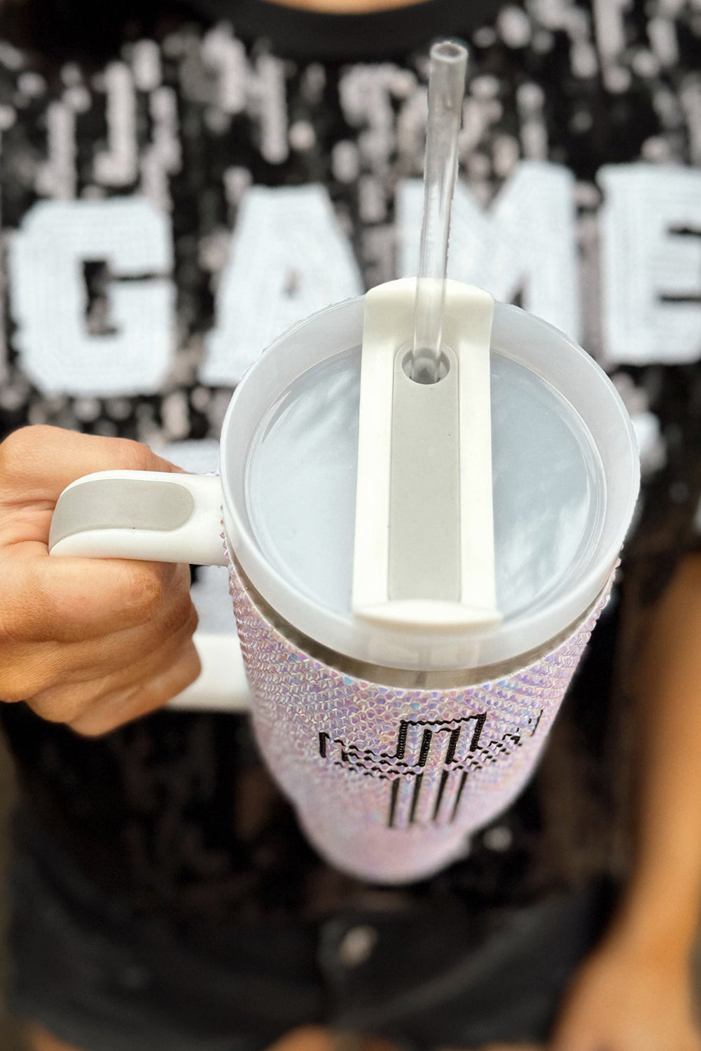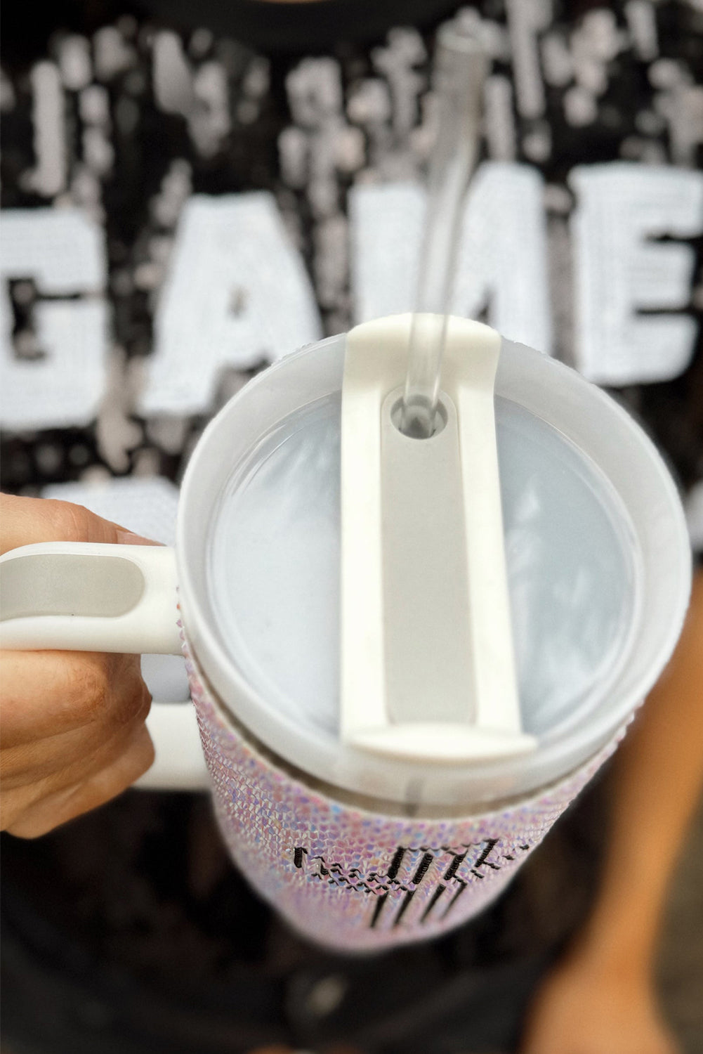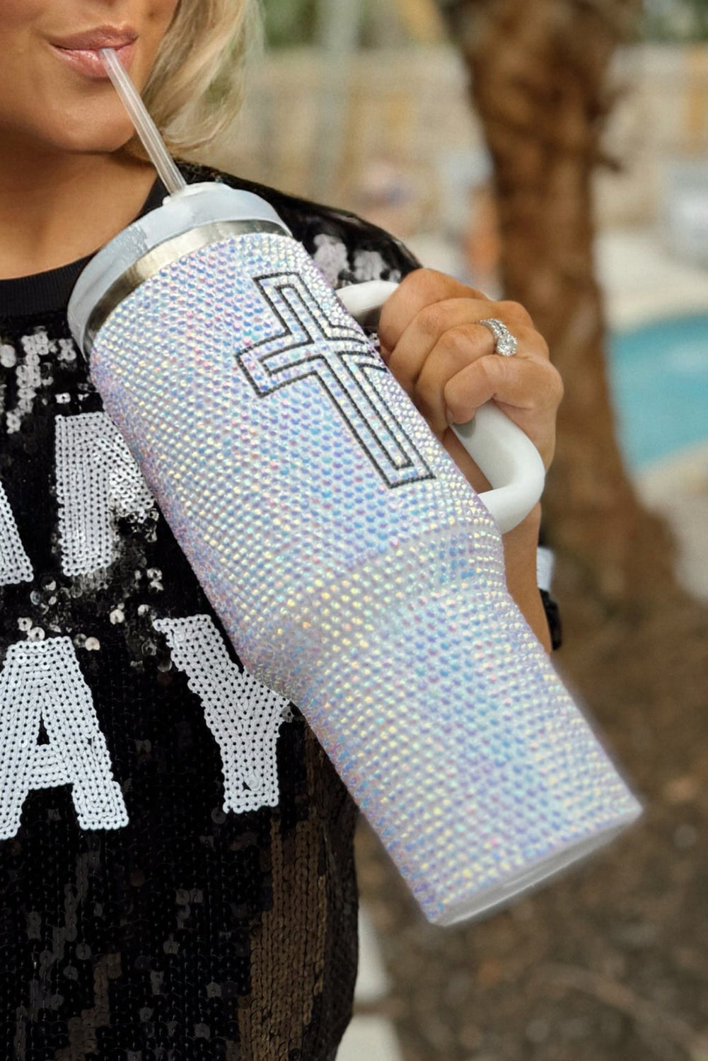 White Cross Rhinestone40 OZ Tumbler with Handle